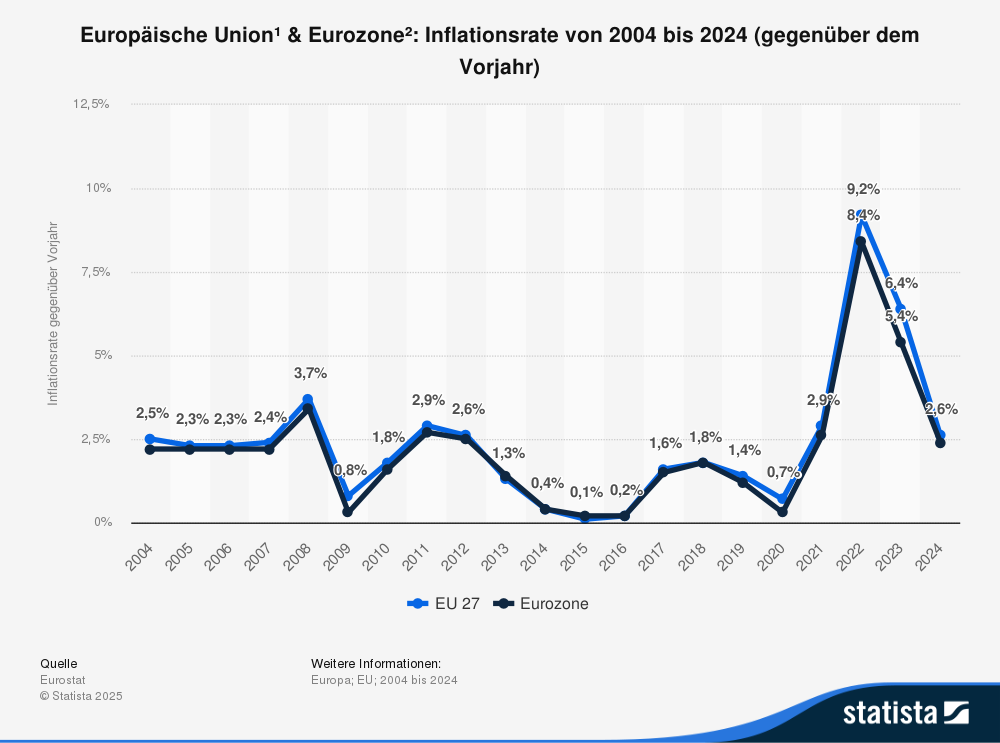 - Inflation (2022 erreichte die Teuerung im Euroraum über 8 %),